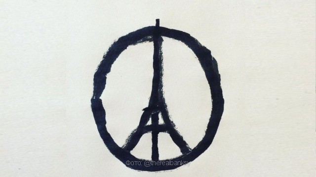 ![]() Уличный художник разместил в своем Twitter рисунок: Эйфелеву башню, которая считается символом Франции и Парижа, заключенную в символ мира пацифик. «Мир Парижу», подписал Бэнкси свое послание.