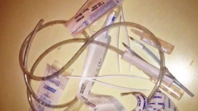 На кадрах видно, что в комнате все перевернуто вверх дном, вещи разбросаны, матрасы перевернуты, на столе оставлена коробка из-под пиццы, валяются шприцы и резиновые интубационные трубки, при помощи которых экстремисты могли принимать наркотики и собирать взрывные устройства.