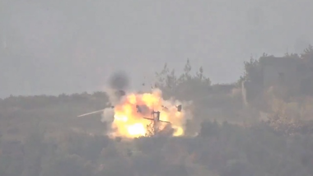 На кадрах видно, как один из сирийских боевиков наводит оружие на вертолет, который принимает участие в поисково-спасательной операции на месте падения ранее сбитого Су-24. Выпущенный снаряд попадает в вертолет, Ми-8 мгновенно загорается.