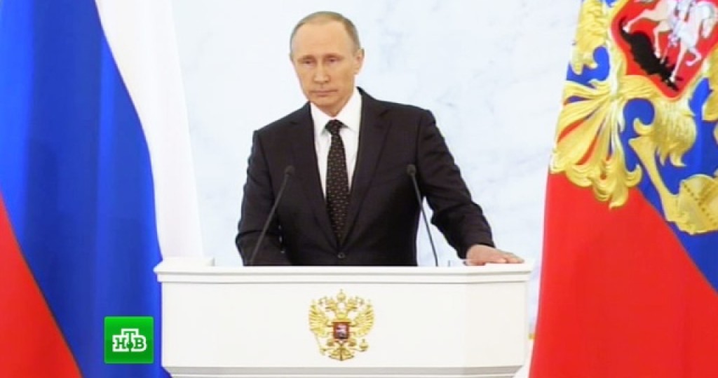 В своей сегодняшней речи президент РФ говорил о необходимости борьбы с терроризмом и о санкциях против его пособников, но больше всего внимания было уделено внутренним социально-экономическим проблемам. С недавними украинскими событиями было связано лишь напоминание о том, что недавно Россия переживала очередной важный рубеж, когда воссоединилась с Крымом, отмечает сайт Вести.Ru