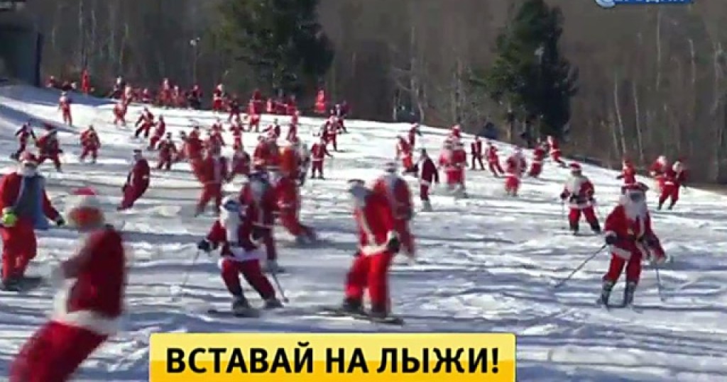 Горнолыжный сезон в США открыли 150 Санта-Клаусов на сноубордах