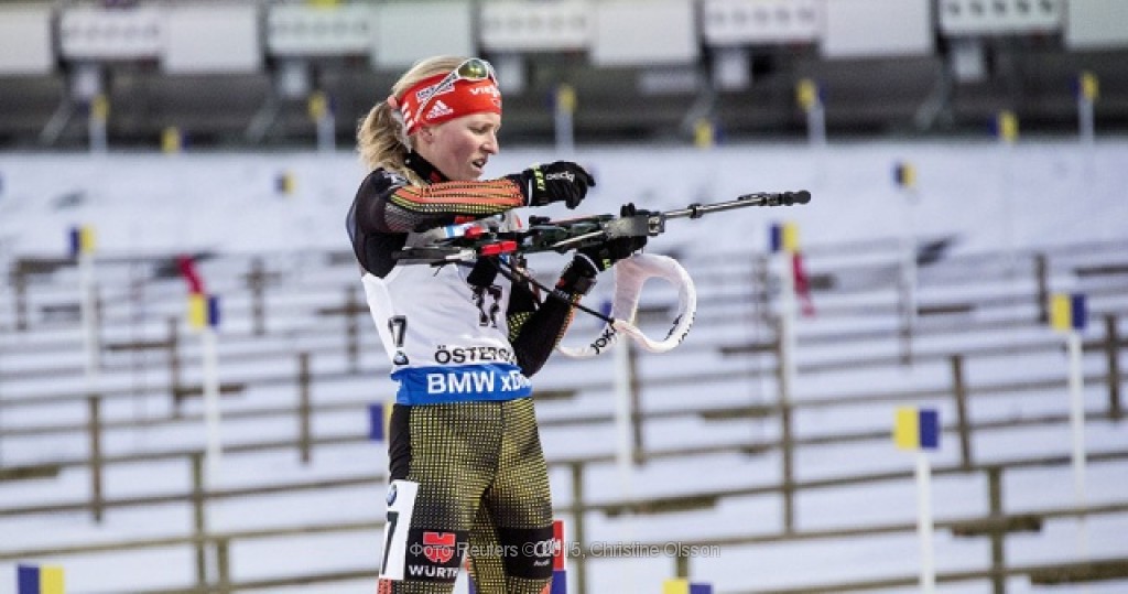 ![]() Победу в гонке на 7,5 км празднует Франциска Хильдебранд. Второй результат показала Марен Хаммершмидт. А замкнула тройку Мириам Гёсснер. |