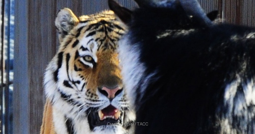 Впрочем, разлука тигра и козла продлится недолго: после спаривания тигрицу переселят в отдельный вольер, так как в дикой природе самки защищают свое потомство от самцов.
