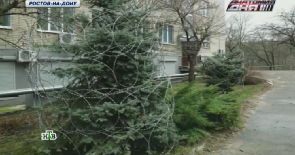Ростовские елки к Новому году украсили гирляндами колючей проволоки