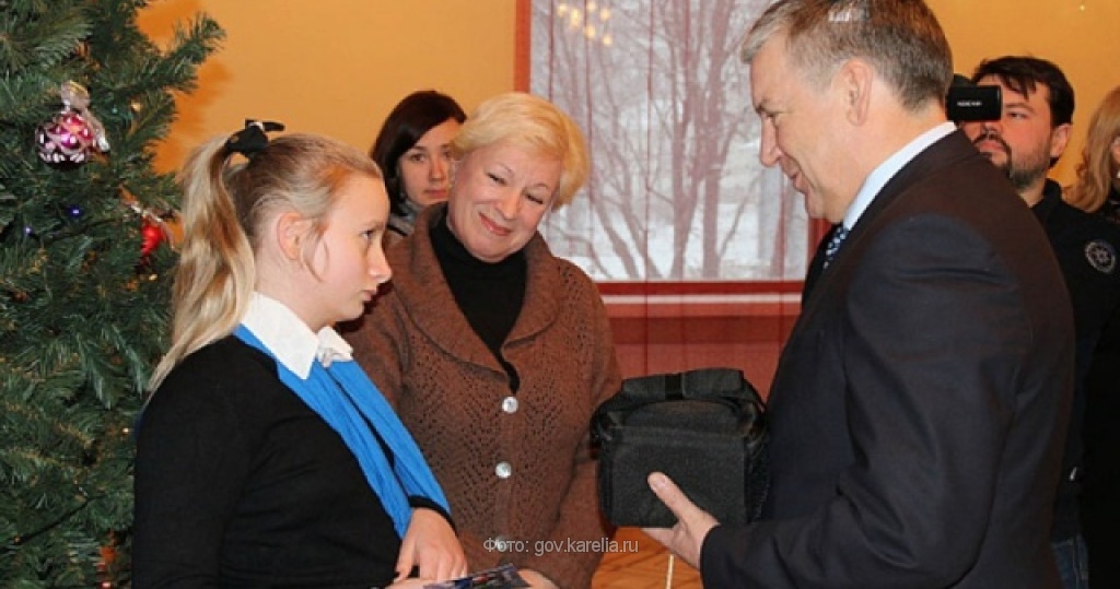 Камеру от Владимира Путина школьница получила из рук главы Карелии Александра Худилайнена. Вручение произошло у новогодней елки. По словам Худилайнена, подарок он забрал в Москве во время своей рабочей поездки в столицу, сообщает официальный портал Республики Карелия.