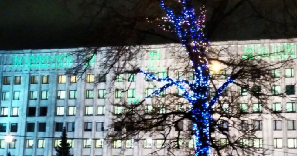 Здание Минобороны украсили светящейся надписью «вежливые люди»