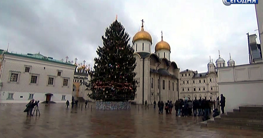 ![]() 30-метровую красавицу с особой осторожностью доставили из Подмосковья новогодним автопоездом. Ветки украсили множество игрушек и километр гирлянд. Каждую деталь декораций утверждали в Управлении по делам президента. |
