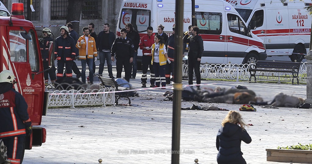 Нуман Куртулмуш: «К сожалению, при взрыве, совершенном террористом-смертником, погибли 10 человек. Большинство из них иностранцы. На данный момент у нас 15 раненых, из них двое в тяжелом состоянии». Взрыв прогремел во вторник утром на площади Султанахмет в историческом центре Стамбула. Как сообщили очевидцы, террорист-смертник взорвал себя рядом с группой иностранных туристов. На площади продолжают работать правоохранительные органы, район оцеплен. Спецслужбы допускают, что поблизости может находиться еще один смертник либо может быть заложена бомба. Движение автотранспорта на площади остановлено, меры безопасности усилены и в других районах Стамбула. |
