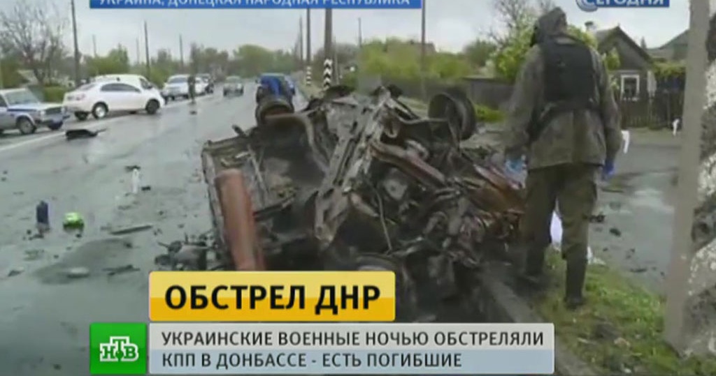 Проезд на свою территорию украинские военнослужащие открывают в 6:00. Задолго до этого часа здесь выстраивалась очередь из автомобилей. Люди хотели навестить своих родственников. Эта поездка стала для многих из них последней. Руслан Якубов, министерство обороны Донецкой народной республики: «В 2:45 Вооруженные силы Украины героические нанесли минометный удар по мирным жителям поселка Еленовка, по колонне, которая находилась перед контрольно-пропускным пунктом. В результате минометного обстрела поста погибли 4 человека, которые находятся до сих пор в машинах, мужчины и одна женщина». Как передает корреспондент НТВ Алексей Ивлиев, четыре тела, но можно смело говорить о 5 убитых мирных гражданах, если считать еще не родившегося ребенка. На месте атаки стоит колонна автомобилей, в которых находятся погибшие, в том числе убитая беременная женщина. По словам Эдуарда Басурина, количество обстрелов поселка Еленовка и других населенных пунктов ДНР на южном направлении увеличилось в десятки раз. И это накануне Пасхи. В силовых структурах ДНР уверены, что украинские военные знали, куда стреляли. Эдуард Басурин, Министерство обороны Донецкой народной республики: «Перед этим летал беспилотник. Беспилотник реально зафиксировал, где кто находится. Я не говорю, что он специально целился в эту машину, я говорю о том, что они целенаправленно целились по этой колонне». Уже установлен тип и калибр орудий, из которых были обстреляны мирные жители. Идут поиски осколков 120-миллиметрового минометного снаряда, который был выпущен с контролируемой украинскими вооруженными силами территории. Сейчас проезд через блокпост закрыт. Здесь до сих пор ожидают прибытия сотрудников ОБСЕ, которые могли бы зафиксировать факт обстрела мирных жителей украинскими военнослужащими.