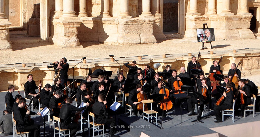 На сцене древнего амфитеатра выступили музыкальные ансамбли ВС Сирии и МВД САР, национальный симфонический оркестр и хор высшего университета музыки, сообщает РИА Новости. Губернатор провинции Хомс Таляль аль-Барази подчеркнул, что амфитеатру, где террористы ИГ (запрещено в РФ) устраивали массовые казни, необходимо «вернуть ассоциации с культурой, человеколюбием и надеждой». Он выразил надежду, что концерты здесь будут проходить регулярно. Таляль аль-Барази, губернатор провинции Хомс: «Мы практически накануне празднования россиянами Дня Победы 9 мая, а сегодня 6 мая День памяти павших сирийских воинов. Мы не устанем говорить, что русский и сирийский народ всегда выступают за правду, мир и любовь». Накануне в амфитеатре Пальмиры выступил симфонический оркестр Мариинского театра под управлением народного артиста России Валерия Гергиева. Концерт назывался «С молитвой о Пальмире. Музыка оживляет древние стены». |