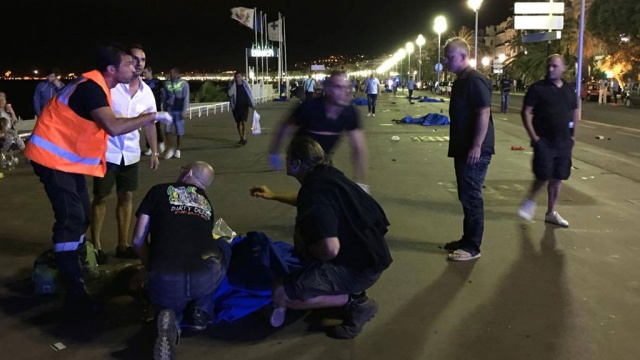 ![]() Агентство France-Presse, сообщает о том, что автомобиль врезался в толпу людей, гуляющих по знаменитой Английской набережной. Неизвестные лица из автомобиля открыли огонь по прохожим. По предварительной информации, есть погибшие и пострадавшие. Полиция вступила в перестрелку с нападавшими. В этот вечер на улицах было много людей, отмечающих национальный праздник Франции День взятия Бастилии. На видеозаписях, выложенных очевидцами события в соцсетях видно, как сотни человек, включая семьи с детьми, бегут от места, где произошла стрельба. Представители мэрии сообщили, что произошел теракт и призвали жителей Ниццы не покидать свои дома. ![]() |