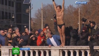 Итальянцы устроили прыжки в ледяные воды Тибра