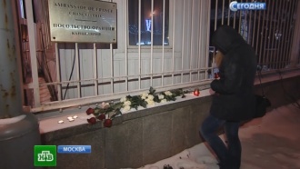 Москвичи несут к посольству Франции цветы, свечи и записки со словами сочувствия