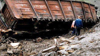 Поезд с рудой сошел с рельсов после подрыва моста на востоке Украины