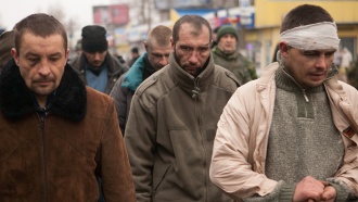 Ополченцы защищают пленных карателей от разгневанных жителей Донецка