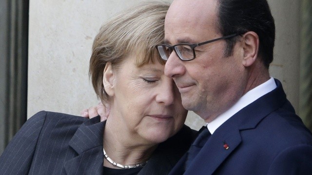 ![]() Пресс-служба президента Украины: «На данный момент проходит встреча тет-а-тет президентов Украины, Франции и канцлера Германии». Как сообщал ранее Олланд, цель объединенных дипломатических усилий Парижа и Берлина достижение соглашения, которое было бы приемлемо для всех сторон конфликта на юго-востоке. Этот визит, стремительно неожиданный, похож на детективную историю, передает корреспондент НТВ Валерия Алехина. Вот еще сегодня утром Олланд давал традиционную пресс-конференцию в Елисейском дворце, и отвечая на вопрос журналистов о ситуации на Украине, сказал, что он срочно вместе с канцлером Германии вылетает в Киев. У них есть некий новый мирный план по урегулированию конфликта на востоке Украины. Как ни пытались журналисты расспросить Олланда о подробностях, он их раскрывать не стал, но отметил, что Париж категорически против того, чтобы оказывать военную поддержку Украине. Также он отметил, что Франция категорически против того, чтобы Украина становилась членом Североатлантического альянса. Олланд отметил, что после встречи с президентом Украины Порошенко он вместе с канцлером Германии Ангелой Меркель полетит в Москву, где уже завтра состоится их встреча с Владимиром Путиным. В Кремле тем временем сообщили, что не знают, какой план урегулирования лидеры Франции и Германии обсудят в Киеве, а затем привезут в Москву, но рассчитывают, что он будет конструктивным, заявил помощник президента РФ Юрий Ушаков. Юрий Ушаков, помощник президента РФ: «Я надеюсь, что он (план ред.) учитывает многие предложения, в том числе комплексного характера, выдвинутые в последние дни нашим президентом».