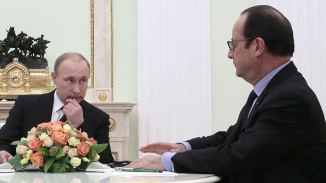 ![]() Он сообщил, что сейчас, исходя из предложений Олланда и Меркель, ведется ведется подготовка документа по имплементации (выполнению) минских договоренностей. Этот документ будет включать предложения Путина и Порошенко. Дмитрий Песков, пресс-секретарь президента РФ: «Исходя из предложений, сформулированных президентом Франции и канцлером ФРГ, в настоящее время совместная работа ведется для подготовки текста возможного совместного документа по имплементации минских договоренностей, документа, который включал бы в себя предложения президента Украины и предложения, сформулированные сегодня и добавленные президентом РФ Путиным». Что касается итогов переговоров, то, по словам Пескова, предварительно они будут подведены в воскресенье, передает ТАСС. Дмитрий Песков: «Дальше работа будет продолжена, и предварительные ее итоги будут подведены в грядущее воскресенье, во время телефонного разговора, который состоится в "нормандском формате" на высшем уровне». Напомним, Владимир Путин начал переговоры с прибывшими в Москву из Киева канцлером Германии и президентом Франции в пятницу после 7 часов вечера. Беседа проходила с глазу на глаз, без членов делегаций и каких-либо экспертов.