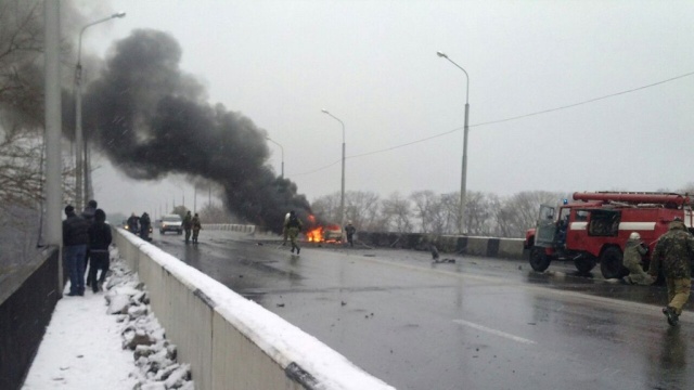 Снаряд попал в Петровский мост в Донецке: вспыхнул автомобиль с людьми