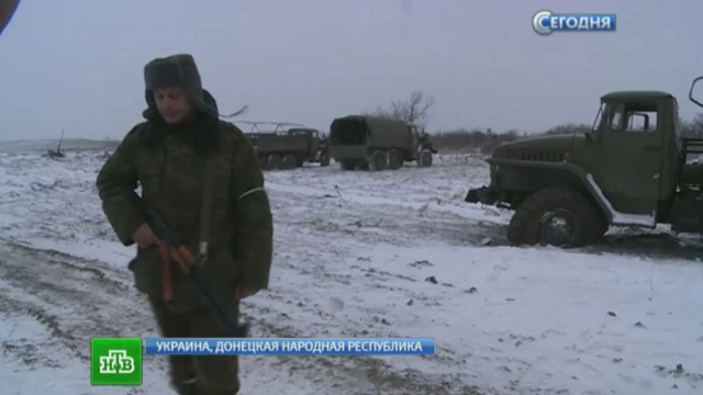 ![]() Но пока ополченцы их не собирают: для этого необходимо отодвинуть ВСУ чуть дальше, чтобы похоронной команде было безопасно работать. Позже тела соберут и передадут родственникам на Украину. Ополченец: «Перемирие было ровно на одну минуту, и на том оно закончилось после ихних минометных и артиллерийских обстрелов». Евгений Голованов, корреспондент НТВ: «Ну, они, я так понимаю, здесь сопротивлялись достаточно жестко. У них группировка насколько мощная здесь была?» Ополченец: «У них очень жесткая группировка и впереди, и у нас в тылу. Они пытаются отсюда вырваться, мы предлагаем им сдаться, сложить оружие и выйти, но покуда этого нет. Вот, посмотрите, вот лежат ихние убитые, брошенные, никто их не собирает даже». Ополченцы на 100% выполняют приказ о прекращении огня, однако ВСУ огонь не прекратили. В этом воочию смог убедиться корреспондент НТВ Евгений Голованов, которому пришлось уходить из-под обстрела.