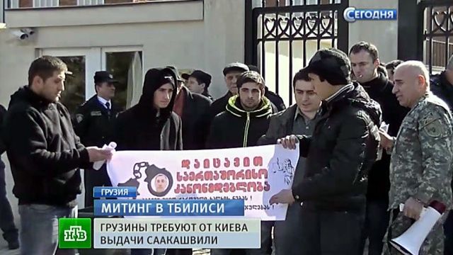 ![]() Действия Киева протестующие назвали «позорным и циничным» шагом, направленным против воли народа Грузии. Представителям посольства передали петицию с требованием уволить Саакашвили и компанию и передать их в руки грузинского правосудия. В середине февраля Главная прокуратура Грузии напомнила украинским коллегам о действующих между странами соглашениях о помощи в расследовании уголовных дел и потребовала задержать и выслать в Тбилиси Михаила Саакашвили и Зураба Адеашвили, объявленных в международный розыск. Однако Генеральная прокуратура Украины отказалась выдавать Саакашвили. Экс-президент Грузии с недавних пор служит главным международным советником Петра Порошенко. Источник: ntv.ru |