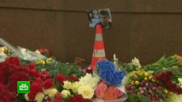 На месте убийства Немцова москвичи соорудили импровизированный мемориал