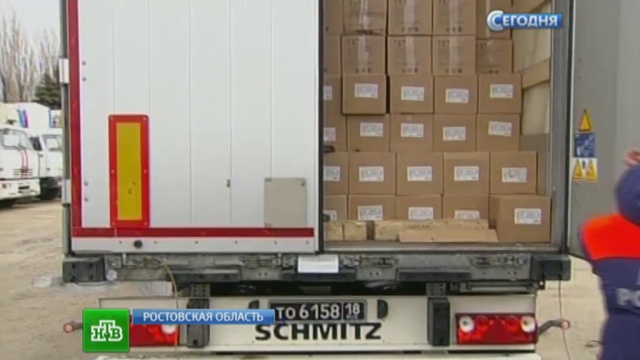 ![]() На территории базы Донского спасательного центра, куда прибывают фуры из разных регионов, журналистам показали, что повезут в Донецк и Луганск: продовольствие, предметы первой необходимости и все то, что нужно для ремонта зданий. Еще 40 тонн грузов, в основном медикаменты, из Подмосковья в Ростов сегодня доставит самолет МЧС. Как только колонна отправится в путь, в Ростове займутся формированием 18-й партии гуманитарной помощи. О дате ее отправки пока ничего не сообщается. Источник: ntv.ru |