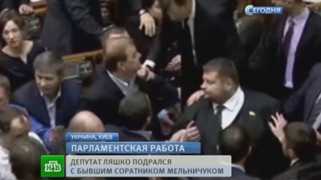 ![]() Стычка между лидером Радикальной партии Олегом Ляшко и бывшим членом партии командиром батальона «Айдар» Сергеем Мельничуком, началась прямо в зале заседаний, а затем переместилась в кулуары. Ляшко выкрикнул в адрес Мельниченко «Геть с парламента, тушка…» и потребовал сдать мандат. Тот в ответ пригрозил бывшим однопартийцам расстрелом. Итогом стали синяки и ссадины депутатов Верховной Рады, а также сломанная мебель. А заседание в итоге пришлось перенести на завтра. Источник: ntv.ru |
