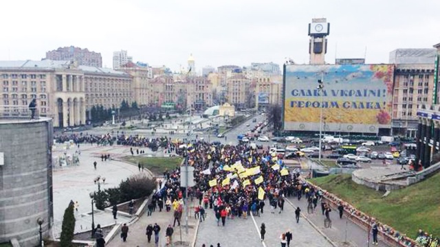 Демонстранты с белыми платками перекрыли Крещатик и требуют отставки Кличко