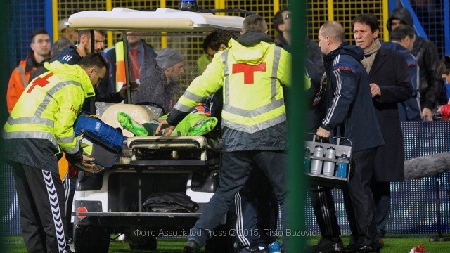 ![]() Вместе с российской сборной прилетел вратарь Игорь Акинфеев, получивший накануне травму на первой же минуте матча с черногорцами. В Акинфеева попал гоярщий файер, брошенный с трибун. В результате 28-летний футболист покинул поле на носилках и был сразу же госпитализирован. Матч был прерван. У Акинфеева ожог шеи и головы, частично сгорели волосы. Врачи подозревают у него сотрясение мозга. Матч возобновился примерно через полчаса. На ворота встал Юрий Лодыгин. Во втором тайме на 67-й минуте при счете 0:0 игра была окончательно прервана после того, как в защитника российской команды Дмитрия Комбарова с трибун был брошен посторонний предмет. Незадолго до этого полузащитник сборной России Роман Широков не смог реализовать пенальти. Сообщается, что в этот момент ему в лицо с трибун светили лазерной указкой. Широков прокомментировал этот игровой момент, сообщив что черногорский голкипер все равно его переиграл. Источник: ntv.ru |