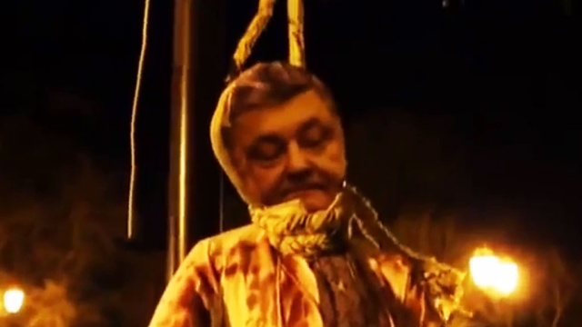 В Одессе повесили окровавленное чучело Порошенко: видео