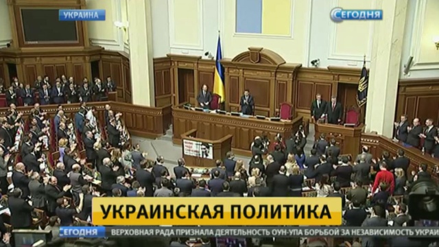 ![]() Интересно, что отец автора закона Роман Шухевич командовал УПА, которая виновна в Волынской резне, геноциде польского населения в 43-м. Но теперь в Раде польского президента приветствуют бурно. А тот вспоминает, как жили когда-то все дружно в Речи Посполитой. О Волынской резне президент Польши предпочел в Раде не упоминать. У мемориала жертвам репрессий, где покоятся и поляки, уже украинский президент продолжает тренд, заданный Радой уравнивает коммунизм и нацизм, ставя в один ряд Гитлера и Сталина. Пётр Порошенко, президент Украины: «Быковнянские могилы являются отголоском черного сентября 39-го года, когда Гитлер со Сталиным развязали кровавую бойню Второй мировой войны и попытались разделить и расколоть Европу. Трудно себе представить, но слова "аншлюс", "аннексия", "оккупация" снова стали актуальны для Украины». Подробности в репортаже обозревателя НТВ Владимира Чернышёва.