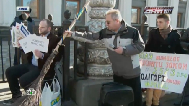 ![]() В Ивано-Франковске с недовольными тоже разбирались жестко. Боевики «Правого сектора» облили зеленкой и запихнули в мусорный бак начальника Главного управления юстиции области Василия Кавацюка. За то, что он зарегистрировал в городе оппозиционную партию. А в Киеве у здания Верховной рады собрались люди, призывавшие бороться с олигархами в парламенте. Ведь даже по официальным декларациям, их там немало. Пикетчики объявили этот четверг чистым и каждому входящему вручали по метле. Но заседавшим депутатам до олигархов не было дела. Они принимали исторически важные документы: отменили День Победы, а конец войны перенесли на день капитуляции Японии, второе сентября. Согласно новому украинскому закону, Великой Отечественной войны вообще не было. Зато национальными героями признаны бойцы бандеровской УПА. Той самой, которая, согласно прежним учебникам истории, пытала и вырезала русское и польское население в украинских селах. Подробности в репортаже «Анатомии дня». Источник: ntv.ru |