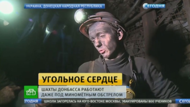 ![]() Владислав Михайлов, электрослесарь: «Вообще ничего не слышно. Здесь же как километр все-таки глубина. Абсолютно ничего. Мы как добывали уголь, так и добываем». Это, впрочем, не значит, что совсем ничего не изменилось. Шахту «Щегловская-Глубокая» четыре раза обстреливали из установок залпового огня. Иван Тимошенко, бригадир: «Выходили, стекол нету, повыбивало. Такая вот обстановка. А людям все равно надо работать, семьи кормить, жить-то надо все равно. Какие бы события не происходили, нам надо выходить из этого положения». Вся горнодобывающая промышленность региона попала в довольно сложное положение. Уголь ведь мало добыть, его нужно еще и продать, а старые экономические связи, как и многие коммуникации на шахтах, войной разрушены. Когда оказываешься в сердце угольной отрасли Донбасса, складывается впечатление, будто в преисподнюю спустился. Очень шумно, душно и невыносимо жарко. Тяжелый и опасный труд горняков Украина уже несколько месяцев не оплачивает. Шахты, как и все остальные промышленные предприятия региона, тоже в экономической блокаде, которую официальный Киев объявил Донбассу. Виталий Приходько, электрослесарь: «Материалов меньше получать стали. Экономим все. Все ремонтируем своими руками». Украинская сторона с осени не рассчитывалась за поставленный уголь, потом перестала отправлять обратно вагоны, а теперь даже заказанные заранее мелкие запчасти для техники не высылает. Юрий Поповкин, директор шахтоуправления: «Дорога ложка к обеду. Если сегодня нужны запчасти, мы должны либо остановиться, либо работать на аварию. Вы же не поедете на автомобиле со спущенным колесом? А мы едем». Большинство донецких шахт государственные, только теперь, раз с Украиной взаимоотношения наладить не удается, вынуждены были зарегистрироваться в самопровозглашенной Донецкой народной республике. Так удобнее и выгоднее. Александр Ковшевный, заместитель директора шахты: «У нас не было расчетов за уголь. У нас была задолженность по заработной плате четыре, а то и шесть месяцев. Если учитывать те месяцы, которые мы не работали. У нас нет взрывчатки. Нет средств взрывания. Но постепенно эти вопросы решаются». Как передает корреспондент НТВ Андрей Григорьев, власти ДНР за уголь платят исправно и обещают к отрасли особое отношение. Донбасс это вообще-то от названия месторождения Донецкий угольный бассейн. Шахты всегда были основой местной промышленности. От того, как они будут работать сейчас, всерьез зависит состояние экономики региона. Шахта «Коммунарская» во время активных боевых действий украинскими войсками была разграблена и сожжена чуть ли не дотла. Нина Бышкина, мастер ремонтно-строительного участка: «Я пришла в ужас от этого кошмара. Не могли люди смотреть на все это. Здесь стояла национальная гвардия, бомбили по нашим помещениям. Люди погибли. Я пришла на площадку, тут тела лежали». Подземные коммуникации восстановили, ремонтируют здания, и на этой неделе шахта опять начала давать уголь, только поставляет его теперь не на Украину, а на электростанции ДНР. Александр Ковшевный, заместитель директора шахты: «На сегодня, я считаю, что наше предприятие энергообразующее в республике». В перспективе власти самопровозглашенной республики намерены сделать отрасль прибыльной. На шахтах работают десятки тысяч людей, и бросить их на пр