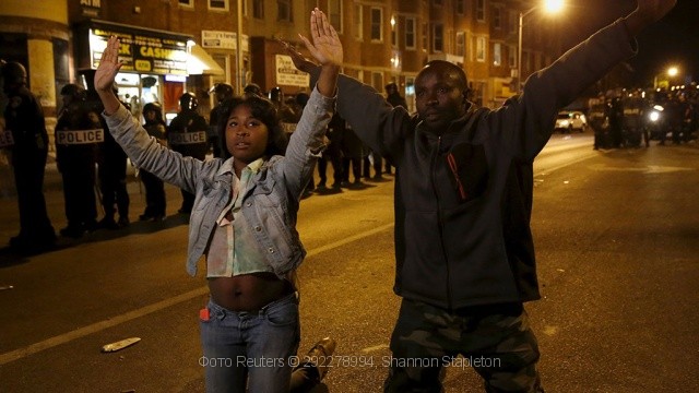 ![]() 25 апреля в американском городе Балтимор начались стычки демонстрантов с полицией, спровоцированные действиями полиции при задержании 25-летнего афроамериканца Фредди Грэя. По некоторым данным, молодому человеку нанесли серьезную травму шеи, он впал в кому, пережил клиническую смерть и скончался, несмотря на усилия медиков, 19 апреля. 27 апреля, в день похорон, уличные акции протеста вылились в массовые беспорядки и погромы. Пришлось даже ввести в город части Нацгвардии. Протесты не утихают по настоящее время, а Балтимор поддерживают десятки американских городов. |
