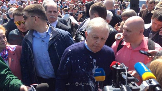 Националист с кефиром атаковал лидера Компартии на митинге в Киеве