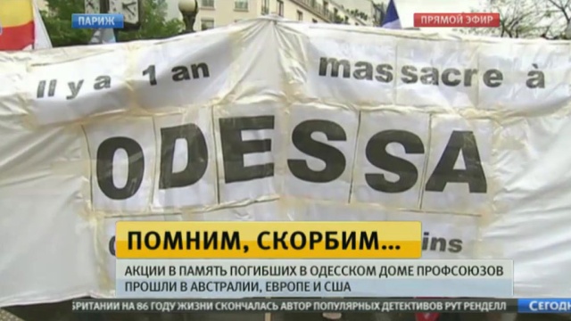 ![]() Траурные мероприятия прошли сегодня в США, Австралии и странах Европы. В Лондоне рядом с посольством Украины состоялся митинг солидарности и жителями Одессы. Несколько десятков человек принесли антифашистские плакаты и фотосвидетельства совершенных преступлений. Лозунги «Мы помним Одессу» и «Нет справедливости нет и мира!» звучали сегодня на разных языках. Пикеты-демонстрации прошли сегодня в центре Парижа. Десятки человек собрались сегодня на одной из самых оживленных площадей датской столицы, чтобы почтить память погибших в ходе кровавых событий в Одессе. Имена жертв зачитали также на акции, состоявшейся в Стокгольме. Пришедшие люди говорили о том, что европейцы должны узнать правду о событиях на Украине. А в Италии, в городке Чериано-Лагетто в годовщину трагедии открыли монумент. На его постаменте лаконичная надпись «В память о мучениках Одессы». |