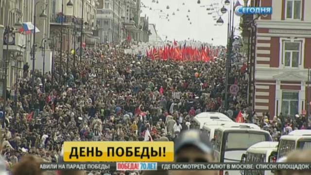 ![]() С небывалым размахом ветеранов чествуют в Крыму. В Симферополе открыты выставки военной техники. На Дальнем Востоке, Урале и в Сибири парады и торжественные шествия уже завершились, сейчас в разгаре народные гулянья. Жители Владивостока отправились отмечать праздник на городские площади, набережные и в скверы. В честь 70-летия Победы одновременно на разных площадках проходят концерты, конкурсы и массовые флешмобы в рамках всероссийских акций. В столице запланированы больше 200 акций и концертов. Пройдут они не только в центре, но и на ВДНХ, в Сокольниках, Коломенском и Царицыне. На Поклонной горе сегодня откроется экспозиция ретроавтомобилей, а на Красной площади вечером устроят большой праздничный концерт. В городах Донецкой республики сегодня бесплатно раздают мороженое. Праздновать в ДНР и ЛНР будут, несмотря на возможные обстрелы и провокации, которые могут устроить подконтрольные Киеву войска. В республиках не собираются отказывать от памяти о героях войны. Сегодня в Донецке и Луганске выступят российские артисты и прогремит салют. |