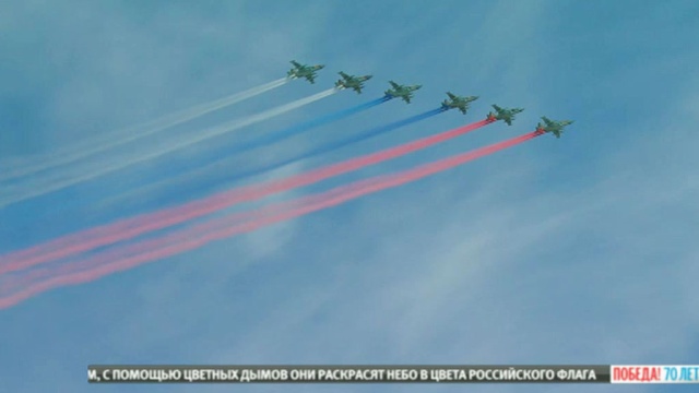 ![]() Следом проявились боевые вертолеты, в том числе звено Ка-52 ударных вертолетов, получивших неофициальное название «Аллигатор». Далее последовал парадный строй самолетов, который открыл Ан-124-100 «Руслан», носящий имя заслуженного военного летчика СССР генерал-лейтенанта авиации Владимира Гладилина. Фигуру «Тактическое крыло» продемонстрировали воздушные асы Липецкого авиацентра на самолетах Су-34, Су-27 и МиГ-29. В свою очередь, асы из пилотажных групп «Русские витязи» и «Стрижи» показали знаменитый «Кубинский бриллиант» ромб, состоящий из пяти Су-27 и четверки МиГ-29. Гвоздем воздушной программы стало число «70», составленное из самолетов МиГ-29 и Су-25. Всего в воздушной части парада Победы участвовали свыше 140 самолетов и вертолетов это вдвое больше, чем в 2014 году. В общей сложности было представлено более 20 типов техники. Прямую трансляцию парада Победы на Красной площади можно было посмотреть на НТВ и НТВ.Ru. Наш сайт также вел текстовую трансляцию.