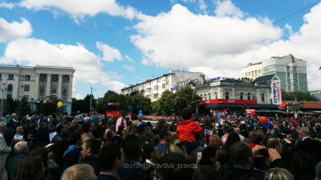 ![]() В итоге «подбитый» «Юнкерс» с ревом умчался с поля боя, оставляя позади себя хвост черного дыма. Когда машина скрылась из виду, зрители услышали громкий взрыв, сообщавший о том, что немецкая машина уничтожена. У-2, за которым развевалась 15-метровая георгиевская лента, сделал над площадью круг почета и сбросил поздравительные листовки. В шествии-параде в Симферополе участвовали около 50 реконструкторов в военной форме. Они бросили к подножию Вечного огня опущенные фашистские штандарты. По центральному проспекту города прошла также колонна ретротехники, за которой проследовали два десятка казаков верхом на лошадях и около 50 мотоциклистов клуба «Ночные волки». Бойцы ВДВ с оружием в руках, члены Союза десантников, воины-интернационалисты, народные ополченцы и представители внутренних войск прошли пешим строем. На улицы Симферополя сегодня также вышел «Бессмертный полк». Участие в этой акции приняли сотрудники прокуратуры Крыма во главе с ее руководителем Натальей Поклонской. |
