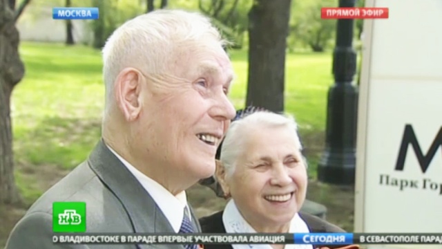 ![]() Ветераны ВОВ собирались в парке Горького с самого первого победного мая 45-го. Сюда сегодня по традиции пришли Николай Александрович и Нина Тимофеевна Юрченко. Он танкист, освобождал Белоруссию и Прибалтику, а она была медсестрой, но на другом фронте. Познакомились они сразу после войны, и вот сегодня у них не просто День Победы, а 70-й совместный День Победы. Многолюдно сегодня и на Поклонной горе. Сюда приходят люди с цветами и воздушными шариками, чтобы подарить их ветеранам. Бывшие фронтовики вспоминают последние дни войны и о том, как они узнали о победе. Как передает корреспондент НТВ Иван Трушкин, ветеранам, пришедшим на Поклонную гору, подарили столько цветов, что им было тяжело идти. Также, по словам нашего репортера, для ветеранов здесь работает бесплатное такси. Подробности в репортаже. |