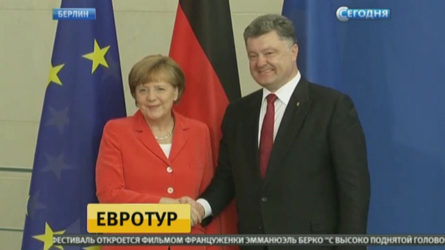 ![]() Порошенко в Берлине уверял, что и сам желает мира, а в нескончаемом кризисе на Украине с новой силой винит одну лишь Россию. На Украине же из уст «дорогого Петро», как его называет Ангела Меркель, на днях звучали грозные заявления. Например, о готовности армии Украины отвоевать в нарушение перемирия донецкий аэропорт. Уже в Берлине, впрочем, возникает ощущение, будто воинственные речи у Порошенко припасены для киевской аудитории, а для Европы образ миротворца. Однако на повестке не только гуманитарный, но и финансовый кризис на Украине. А также тяжелый ход реформ, борьба с коррупцией, обещанный, но не осуществленный Евросоюзом безвизовый режим для Украины. Спасать национальную экономику в Европу одновременно с президентом вылетел и премьер Яценюк. На переговорах с лидером Франции Олландом и главой правительства Вальсом решили: для презентации инвестиционного потенциала Украины созовут целый саммит. Но это осенью, а сейчас, согласно все тем же минским договоренностям, пора проводить местные выборы на Донбассе. Однако об этом ни из Парижа, ни из Берлина ни слова. Подробности в репортаже корреспондента НТВ Константина Гольденцвайга. |