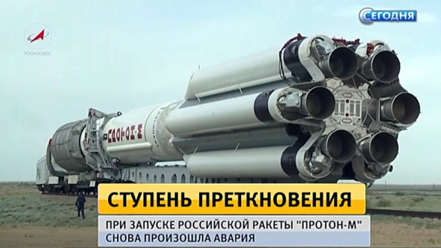 ![]() Нештатная ситуация на Байконуре возникла в 08:56 по московскому времени, за минуту до того, как от «Протона» должны были отделиться разгонный блок и мексиканский спутник связи. Это его ракета должна была доставить на орбиту за 13 с половиной часов. Как сообщает корреспондент НТВ Николай Захаров, на стартовую площадку «Протон» вывезли 14 мая. Трансляция запуска шла в прямом эфире на сайте Роскосмоса и на девятой минуте ничто не предвещало беды, а затем комментаторы «ушли по-английски». Позже третья ступень ракеты-носителя «Протон-М» с пристыкованным к ней орбитальным блоком упала в Забайкальском крае. Специалисты предполагают, что на землю могли попасть до 10 тонн высокотоксичного топлива. Мексиканский спутник связи планировали запустить еще 29 апреля, но старт перенесли. Инженеры сообщили, что требуется дополнительная проверка бортовой аппаратуры. По предварительной версии (а она возникла после анализа телеметрических данных), авария произошла из-за отказа рулевых двигателей третьей ступени. По крайней мере, сейчас это рассматривается в качестве основной причины. |