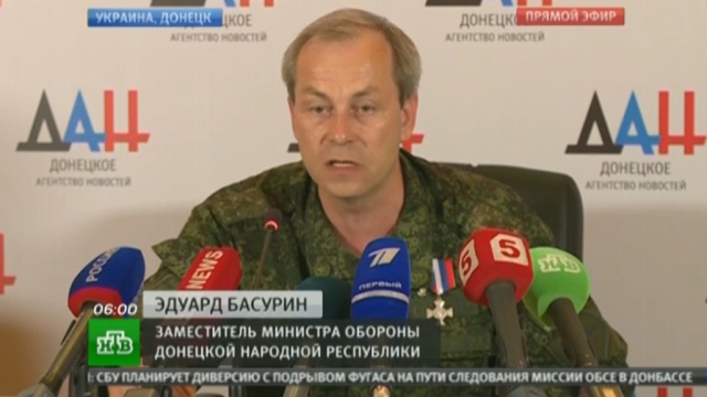 Эдуард Басурин, официальный представитель Минобороны ДНР: «По данным нашей разведки, СБУ спланировано в проведение в ближайшие несколько дней диверсий с подрывом фугаса при следовании колонны миссии ОБСЕ по территории Донецкой народной республики. Всю информация мы оперативно доводим до ОБСЕ для принятия мер безопасности».