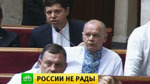 Украинские депутаты, тем временем, продолжают рубить связи с Россией конвейерным темпом. Они отказываются от военно-технического сотрудничества и от транзита российских миротворцев в Приднестровье через территорию Украины, передает обозреватель НТВ Владимир Чернышёв.