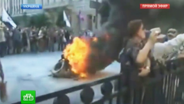 Митингующие подожгли шины и подрались с милицией у здания Рады
