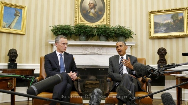 В свою очередь, генсек Альянса Йенс Столтенберг заверил Обаму, что НАТО помогает укреплять обороноспособность Украины.