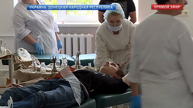 Жертвами обстрелов за минувшие сутки стали более 20 человек. Пострадавших, которым требуются срочные операции, больше сотни. Сегодня для них неравнодушные жители Донецка выстроились в очередь у центра переливания крови. Сдавать ее пришли даже те, кто никогда этого не делал.
