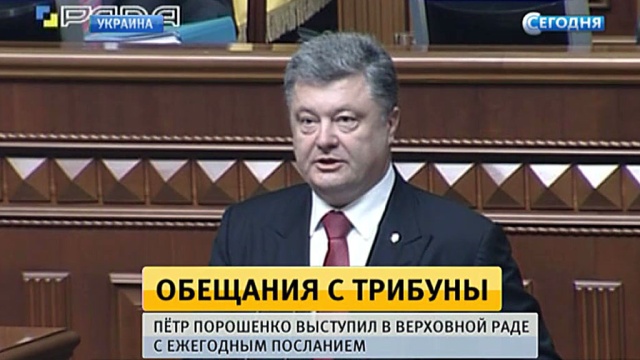 С трибуны Рады Порошенко пообещал рост национальной экономики и безвизовый режим с Евросоюзом к 2016 году. Кроме того, одной из основных задач на текущий год украинский лидер назвал внесение изменений в главный закон страны. Конституция нового образца должна содержать положение о децентрализации государства. Источник