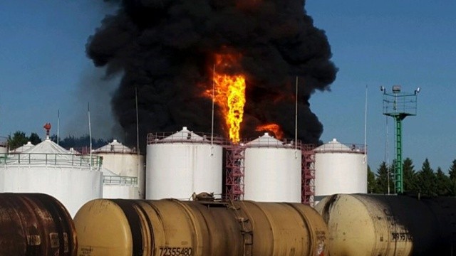 Пожарным не удается справиться с огнем на нефтебазе под Киевом