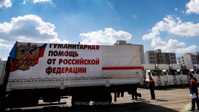 Грузовики тронулись в 04:00 и сейчас двигаются к государственной границе. Они везут более тысячи тонн гуманитарной помощи. Это, например, продукты питания мясные, рыбные и молочные консервы, сахар, соль, а также предметы первой необходимости и все необходимое для образовательных учреждений.